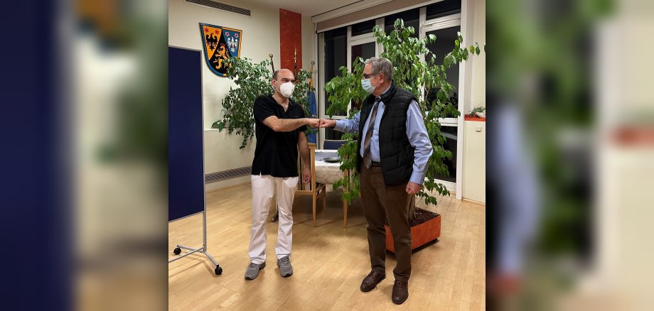 VG-Chef Klaus Penzer dankt Dr. Oliver Kornmann für seine Impfaktion in der VG-Verwaltung. Viele Mitarbeitende haben sich bosstern lassen, ein wichtiger Beitrag im Kampf gegen die Pandemie. "Wir müssen alles tun, das von Bundeskanzler Olaf Scholz ausgegebene Ziel von 30 Millionen Impfungen bis Weihnachten zu erreichen."