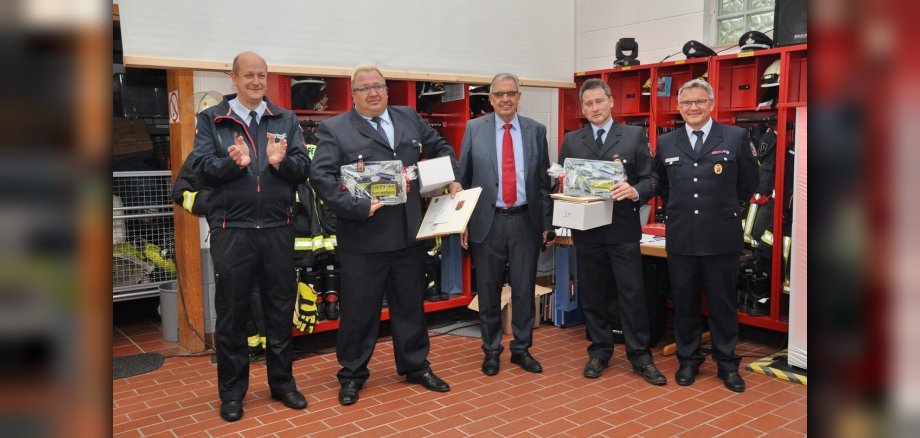 Große Ehre für vier Kameraden der Mommenheim Feuerwehr: Werner Raab und Frank Windisch wurden mit dem Goldenen Feuerwehrehrenzeichen, Thomas Jahn und Jürgen Ruthard mit dem Silbernen Feuerwehrehrenzeichen ausgezeichnet. Bürgermeister Klaus Penzer und Wehrführer Matthias Weindorf lobten das außergewöhnliche Engagement der Jubilare. Werner Raab, seit 35 Jahren bei der Wehr, ist Mitglied des Mommenheimer Kommandos und bei den zahlreichen Baumaßnahmen rund um das Gerätehaus immer dabei. Er ist seit vielen Jahren Vorsitzender des Fördervereins. „Wenn es etwas zu tun gibt, dann ist Frank Windisch zur Stelle,“ Matthias Weindorf lobte außerdem dessen Engagement auf politischer Ebene, Frank Windisch ist Mitglied im Mommenheimer Gemeinderat und im Verbandsgemeinderat Rhein-Selz.