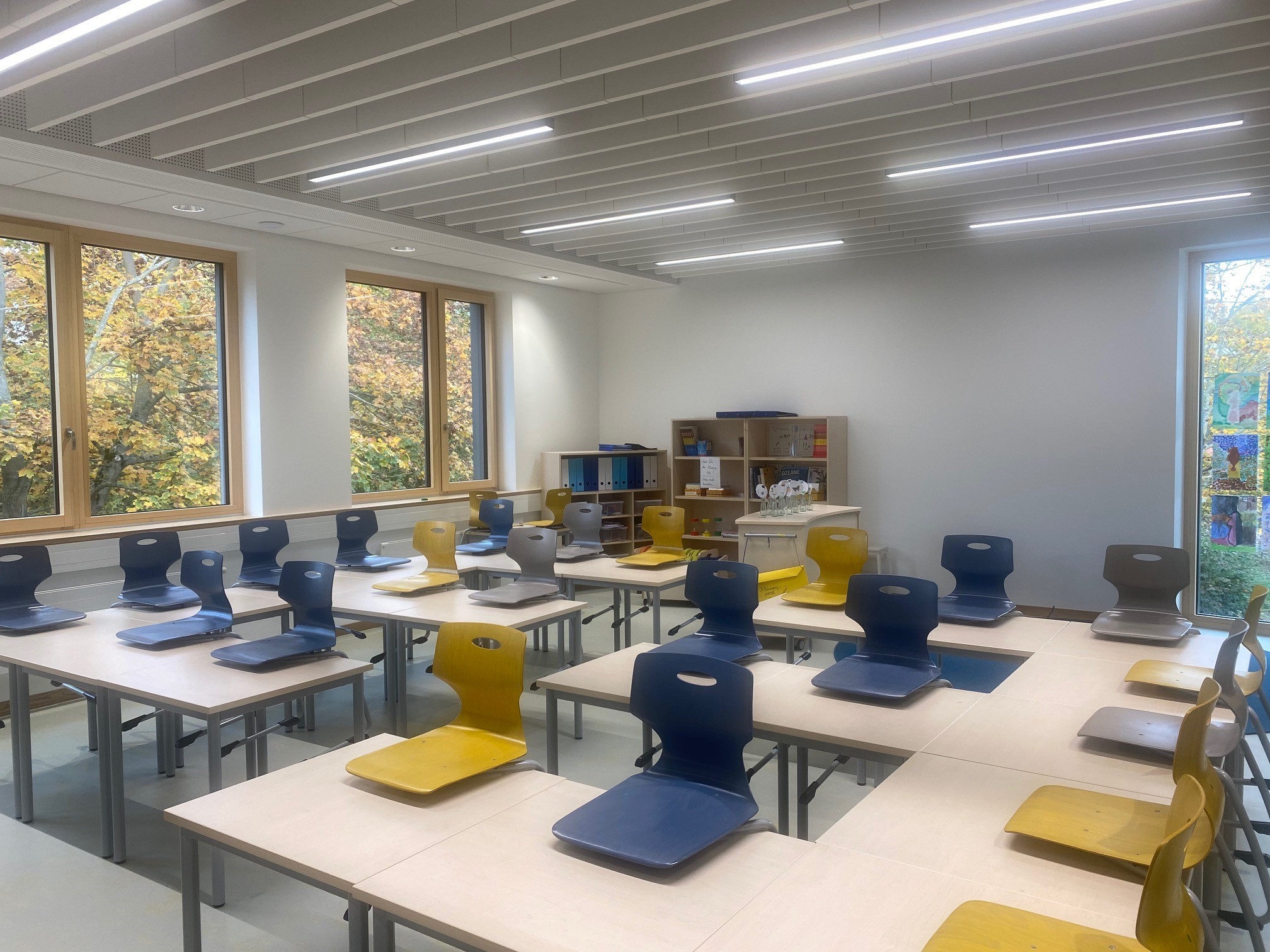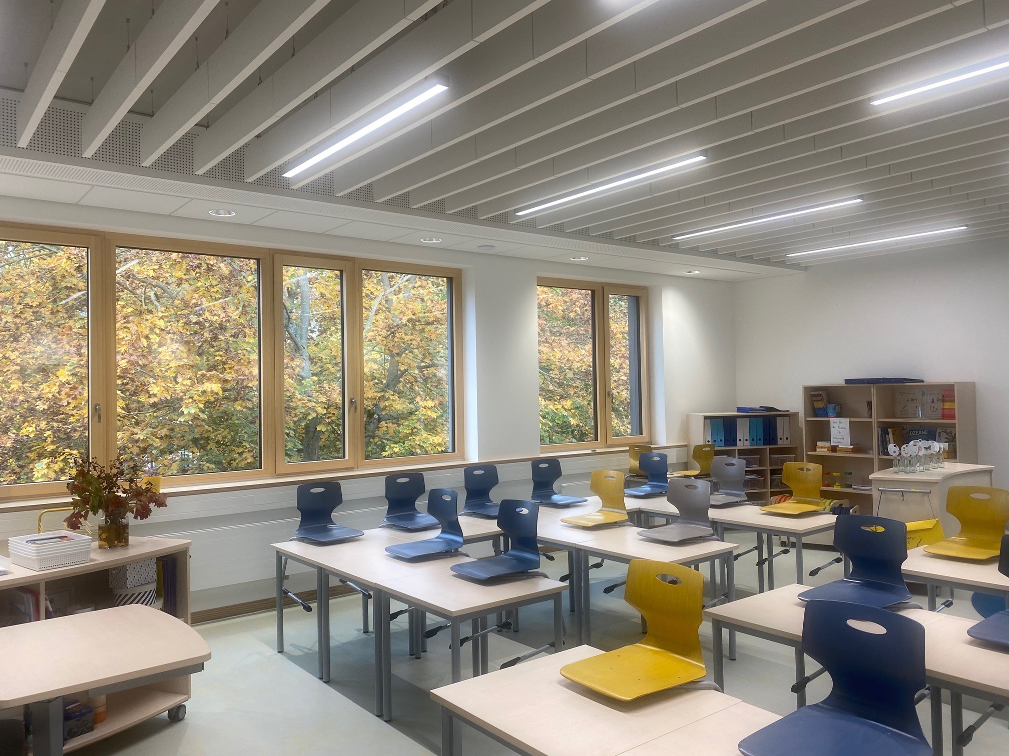 Die neue Grundschule zeichnet sich insbesondere durch eine offene, moderne und großzügige Raumgestaltung aus, wobei eine optimale Kombination aus Tages- und Kunstlicht für eine wohlige Lernatmosphäre sorgt.