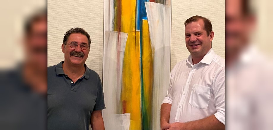 „Rondo“, so wird das Verwaltungsgebäude der VG Rhein-Selz genannt. So präsentiert der Niersteiner Künstler Eckhard Meier-Wölfle im dem „Runden“ nun seine Werke. Auf den ersten Blick reiht sich ein kräftiger Farbfleck an einander. Die ursprüngliche Ausstellungsreihe der VG konnte aufgrund der Pandemie nicht mehr durchgeführt werden – musste unterbrochen werden. Die seit langer Zeit verwaisten Wände füllen sich nun wieder mit Leben.