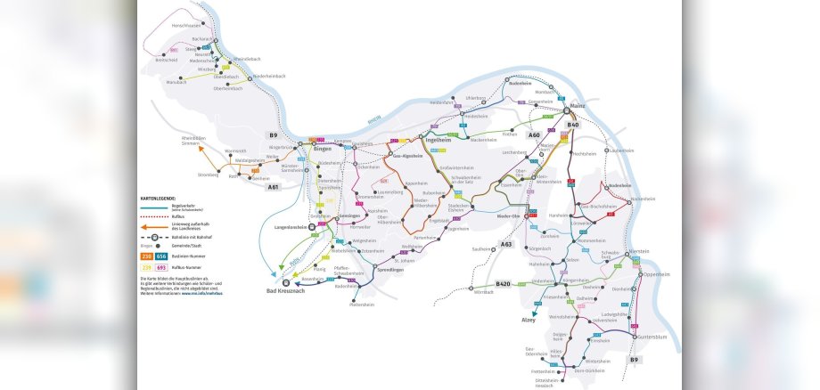 zwischen Bacharach und Guntersblum profitieren von halbstündlichen oder stündlichen Anschlüssen, zum Beispiel nach Bingen, Ingelheim oder Nieder-Olm. Die Busanbindung aus dem rheinhessischen Umland in die Stadt Mainz wurde optimiert und einige Ziele werden ganz neu mit Bussen angefahren. Auf zahlreichen Strecken gibt es ab dem 17. Oktober ein bedarfsgerechtes Angebot, das die Randzeiten mit RufBussen oder Nachtlinien abdeckt.